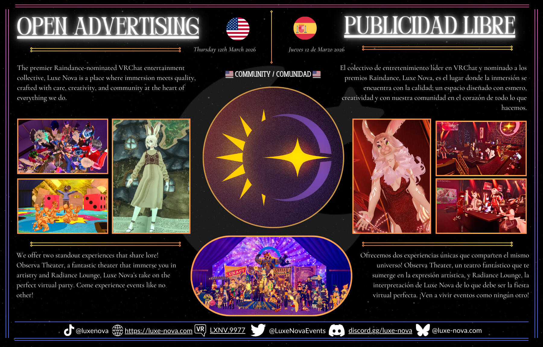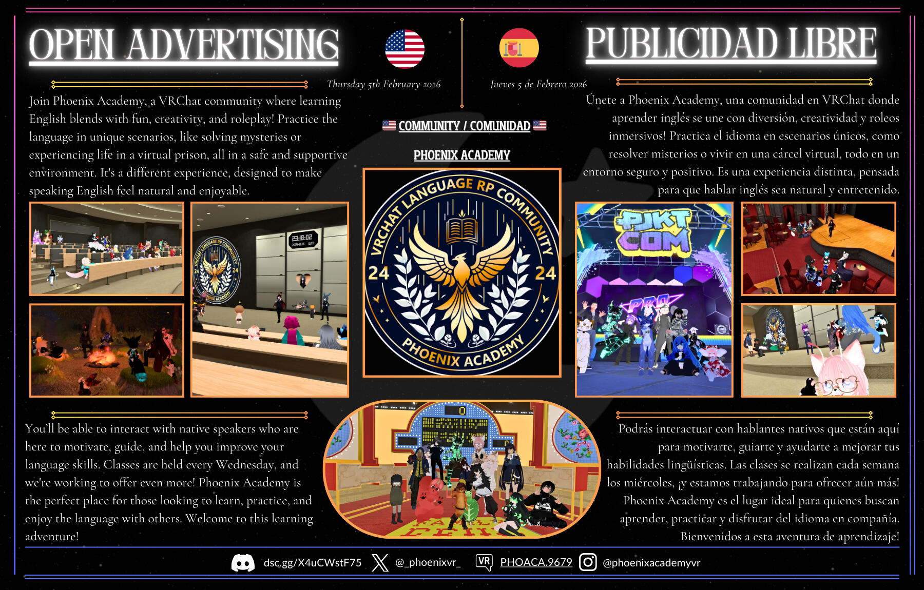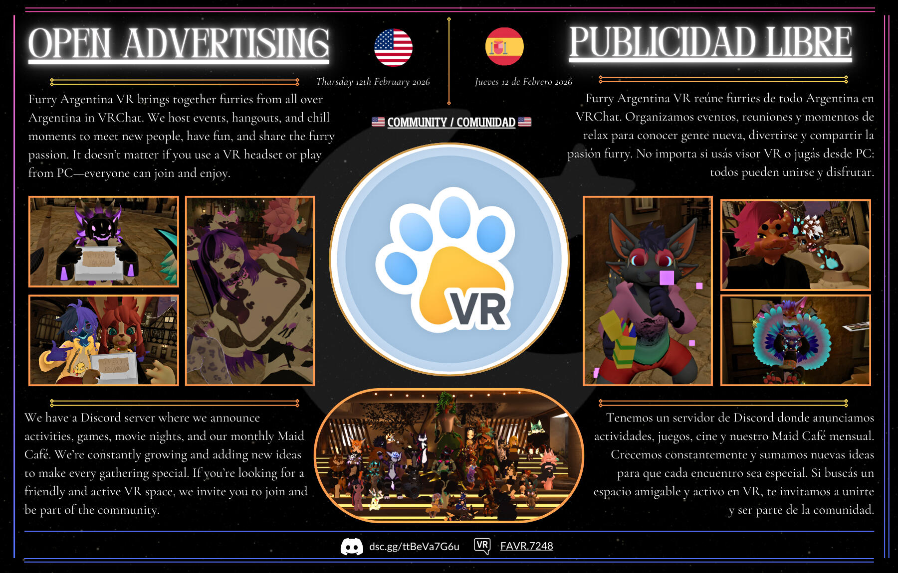 A Spanish-speaking VRChat community that supports creators, shares knowledge, promotes Hispanic culture, and builds strong connections worldwide.